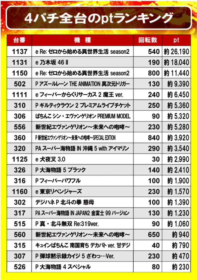 ②4パチ全台のptランキング