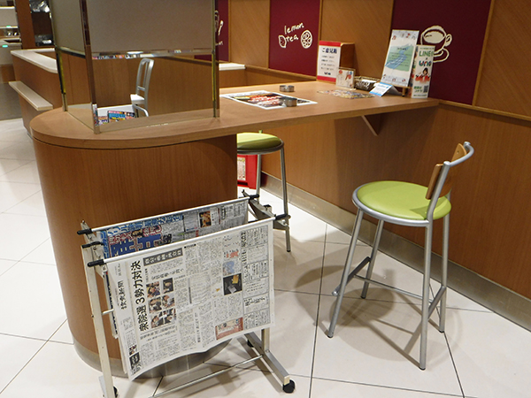 店内には新聞などが用意されたレストスペースを完備。ゆっくりとくつろげる空間があることも嬉しいポイントだ。さらに、携帯充電器や消臭スプレーの貸し出し、温・冷おしぼりを使えるなど、サービス面でも抜かりはない。