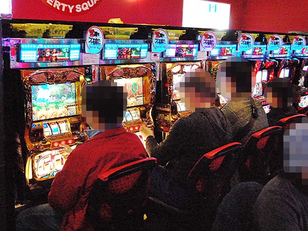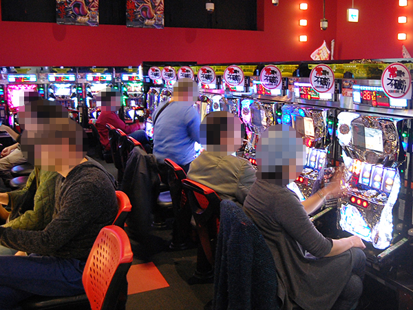取材時、店内には既に多くのプレイヤーが集結しており、パチンコ・パチスロを問わずにぎやかな状況となっていた。