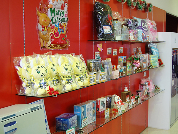 景品コーナーはお菓子や日用品など多彩なラインナップ。パチンコ・パチスログッズの品揃えも様々で、ファンにはたまらないものとなっている。