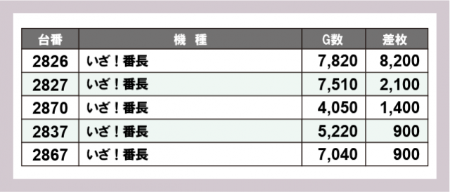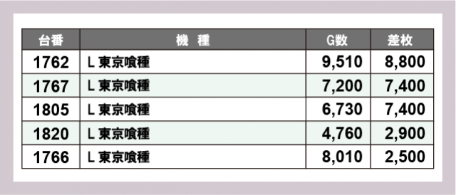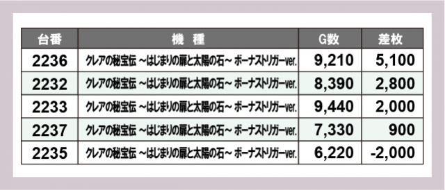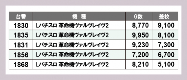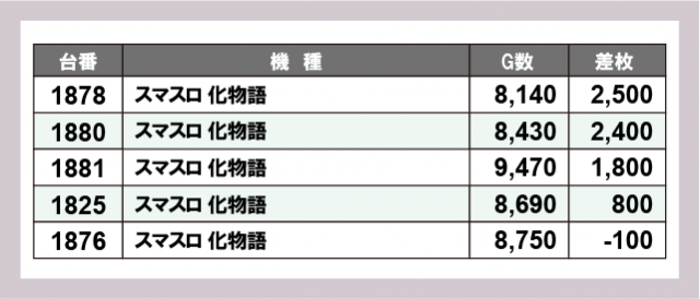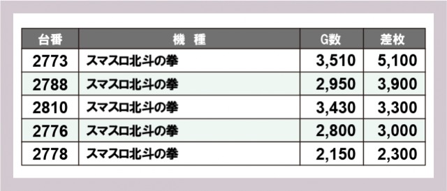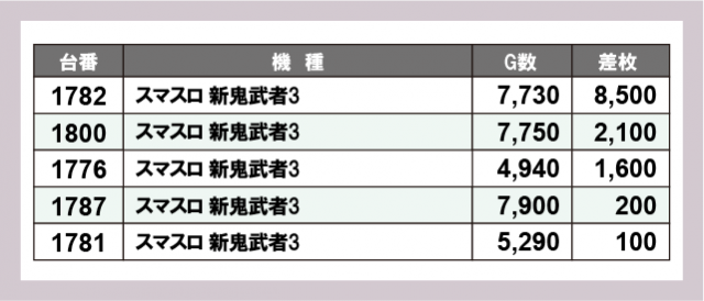 ※差枚数順に掲載しています