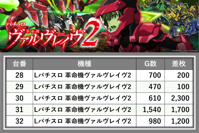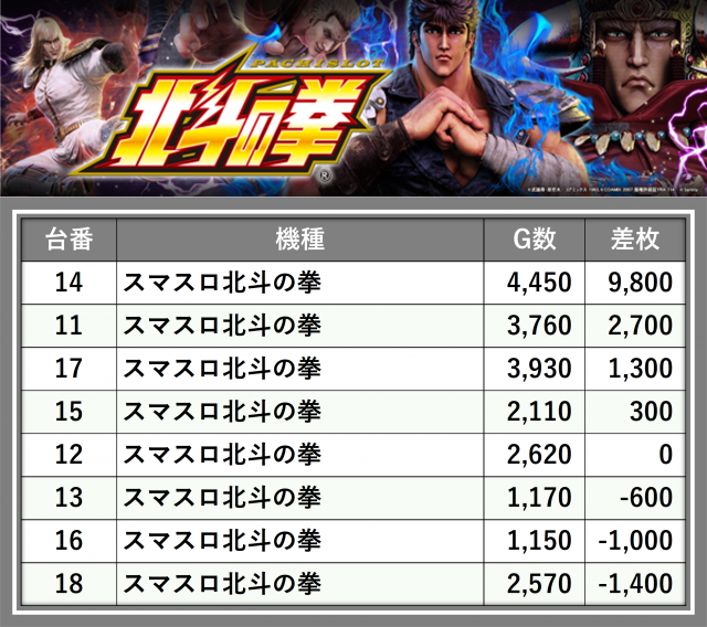 ※差枚数順に掲載しています
