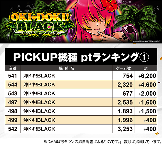 「沖ドキ!BLACK」の541番台が+6,200pt!!