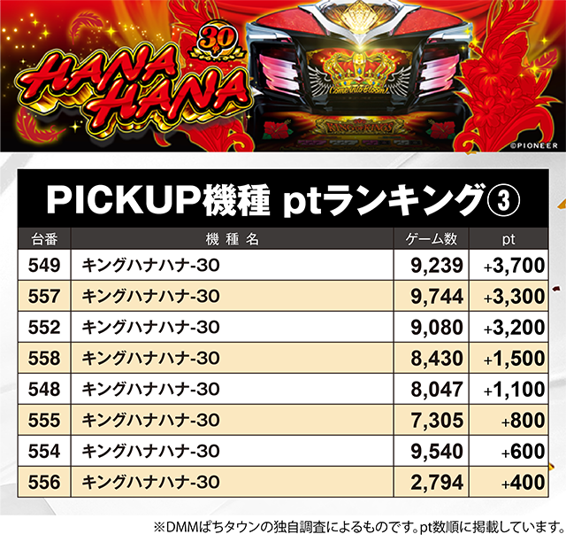 「キングハナハナ-30」の549番台と557番台、552番台が+3,200pt以上!