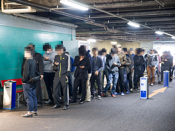 開店前から50名以上のプレイヤーが集結。高揚感があふれる中、プレイヤーたちは開店と同時にパチンコ・パチスロの各シマへ向かっていった。