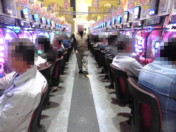 1円や0.5円といった低貸し玉パチンコは機種を問わず、全体的に高稼働。特に海物語シリーズは人気が高く、空き台が出るのを待つほどの状況だった。
