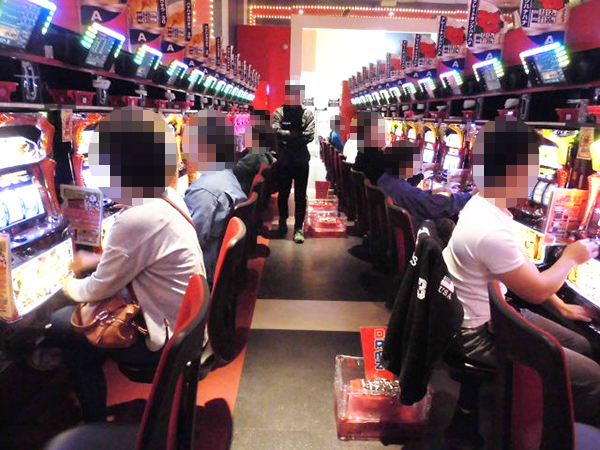5円パチスロも多彩な機種が取り揃えてあり、プレイヤーたちにとっては嬉しい限り。笑顔でレバーを叩く姿が数多く見受けられた。