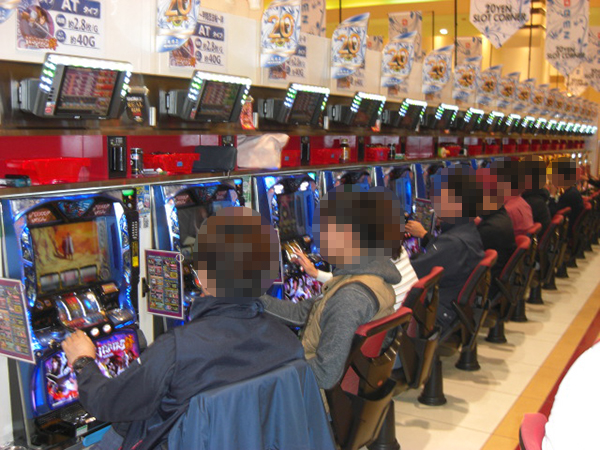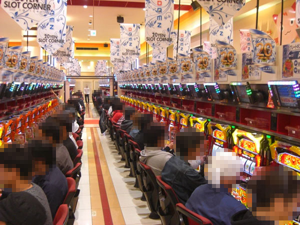 20円パチスロを見てみると、朝に引き続きハナハナシリーズと「バジリスク~甲賀忍法帖~絆」が高稼働をキープ。プレイヤーたちの明るい表情が、満足度の高さをあらわしているようだった。