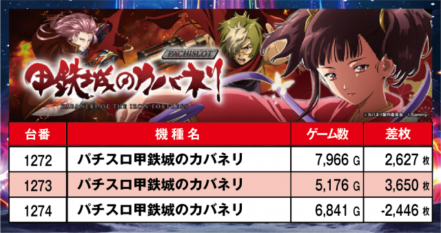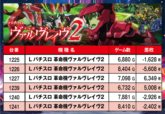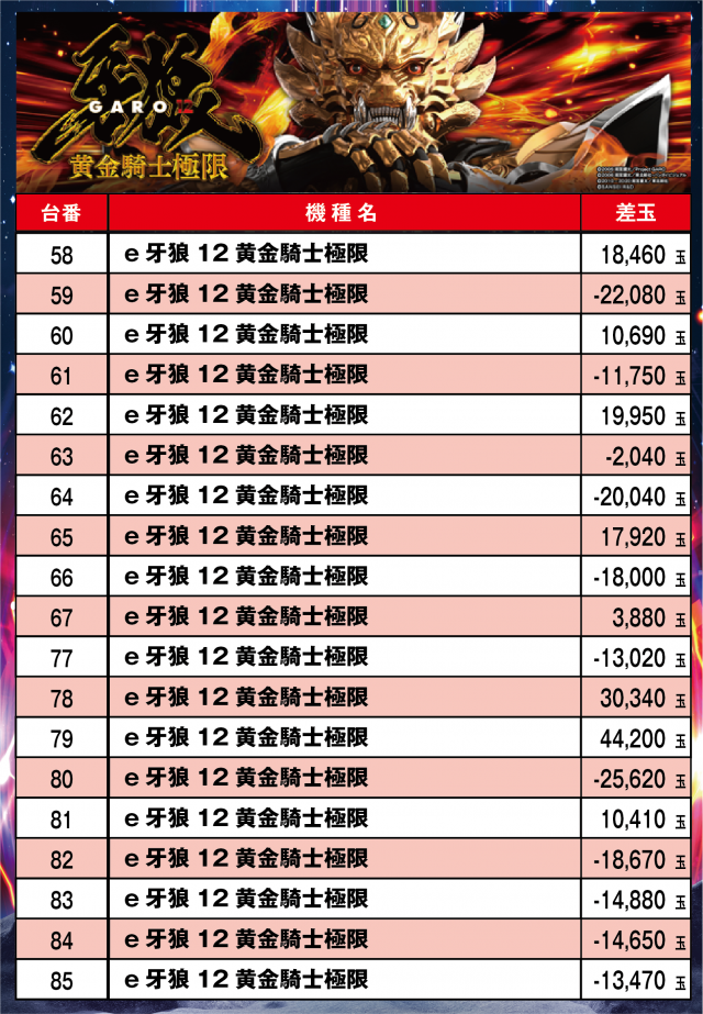 ※差枚順に掲載しています