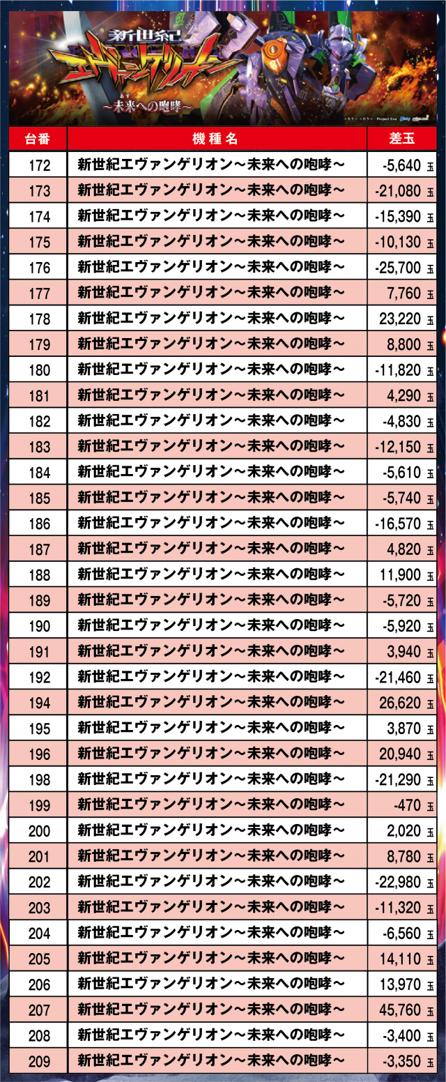 ※台番順に掲載しています
