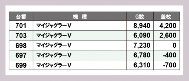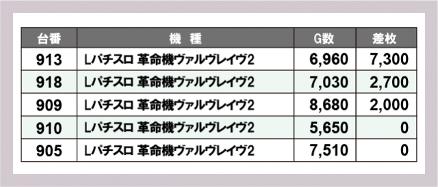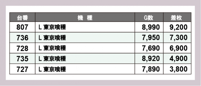 ※差枚数順に掲載しています