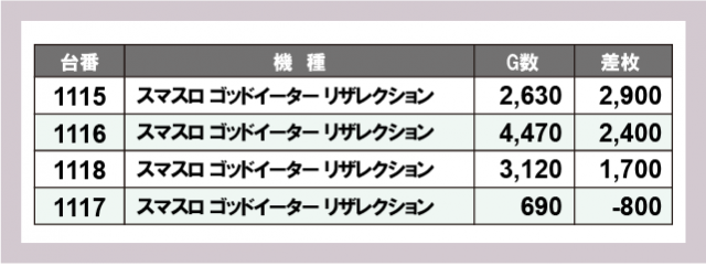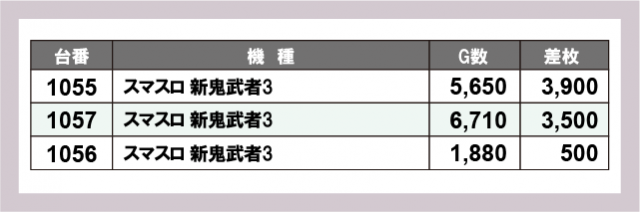 ※差枚数順に掲載しています