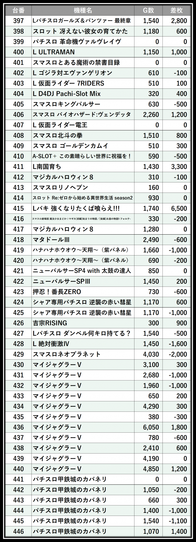 その結果の中から、ぱちタウンが注目すべきポイントを厳選してユーザーにお届け!プレイヤーが楽しんだ一日を下記データにて振り返ってみて欲しい。