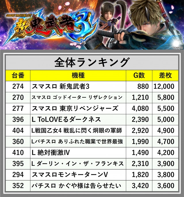 ※差枚数順に掲載しています