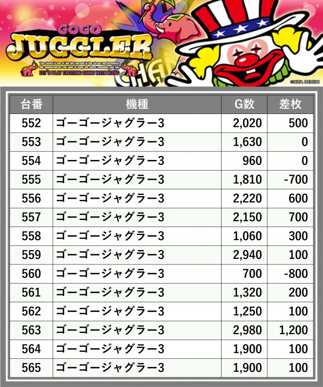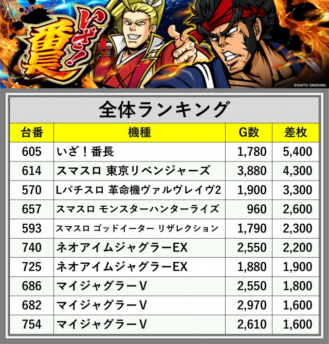 ※差枚数順に掲載しています