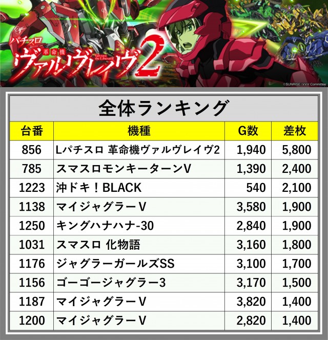 ※差枚数順に掲載しています