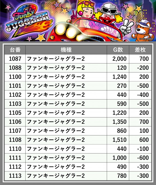 ※台番順に掲載しています