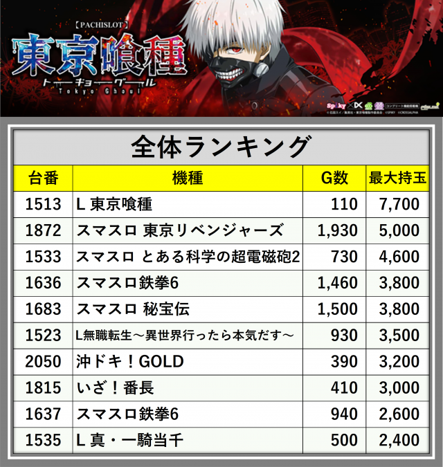 厳選された取材対象機種をはじめ、その他スロット全体から好記録が飛び出した!プレイヤーが楽しんだ1日を下記データにて振り返ってみて欲しい。