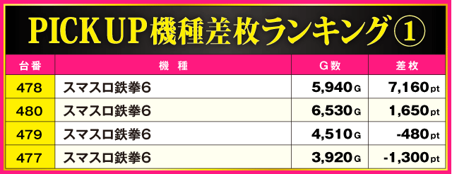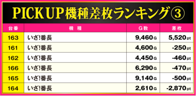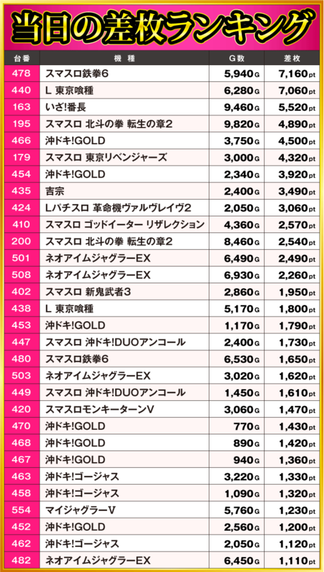 当日の差枚ランキング