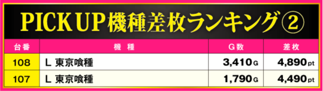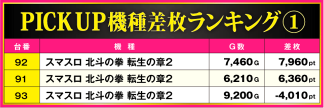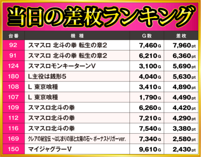 当日の差枚ランキング