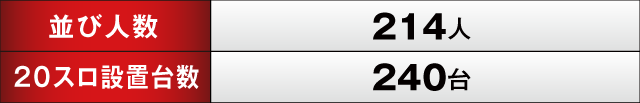 この日は朝から214人ものプレイヤーが集結。開店と同時に店内は大きく盛り上がり、とくにスマスロコーナーが活況となっていた。どんな機種が活躍したのか、データを見ながら紐といていくとしよう。