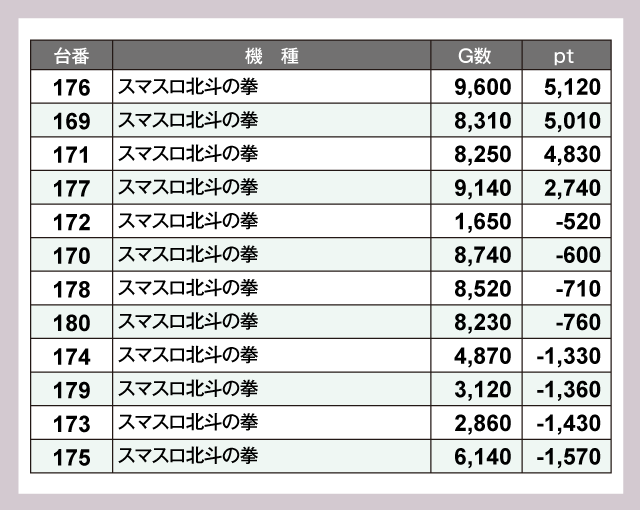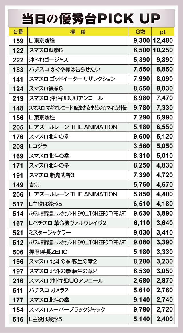 ※差枚pt順に掲載しています。