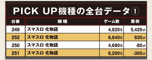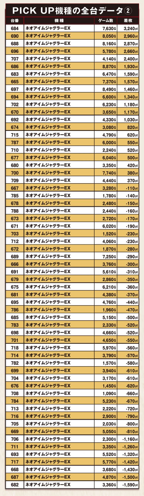 61台とかなりの数が設置されているが、高稼働の台が複数確認できる。4桁プラスptが13台とptの面でも成果をあげていた。