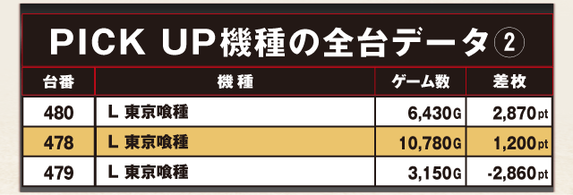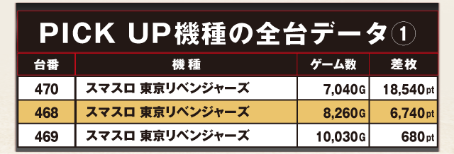 +18,540ptで差枚ランキングトップに輝いた470番台を始め、3台すべてがプラスの好成績を収めた。