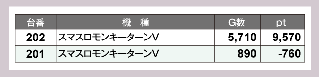 『スマスロモンキーターンV』は2台中1台が大きくプラスptを叩きだし、定番人気機種としての実力を示していた。