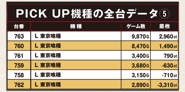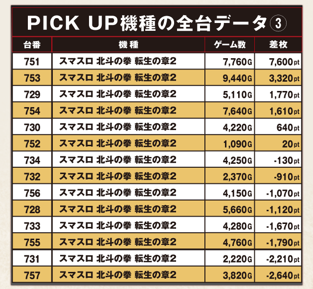 9,870ゲーム稼働した763番台が+2,960pt、8,470ゲームの760番台が+1,490ptと結果を残した。