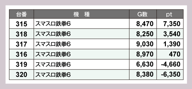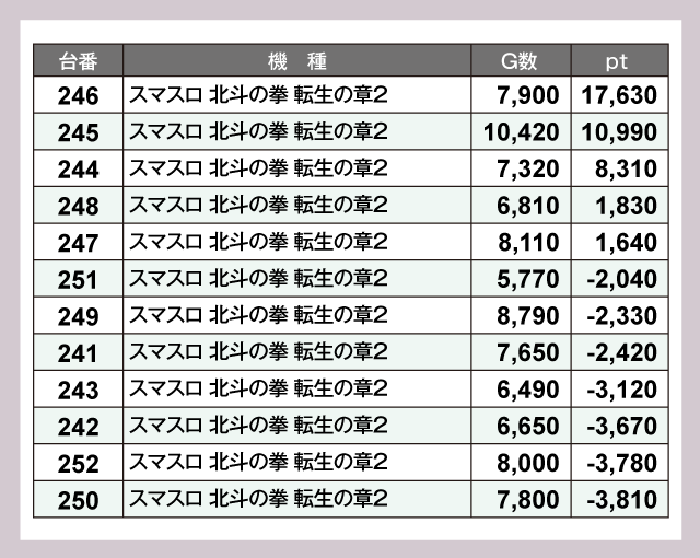 ※差枚pt順に掲載しています。