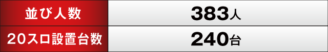 開店前から383人ものプレイヤーが集まったこの日。取材時の店内はすでにスロットコーナーが大盛況で、とくにスマスロのシマからはただならぬ熱気が感じられた。どの機種がどんな活躍をみせたのか、気になる真相に迫っていくぞ。