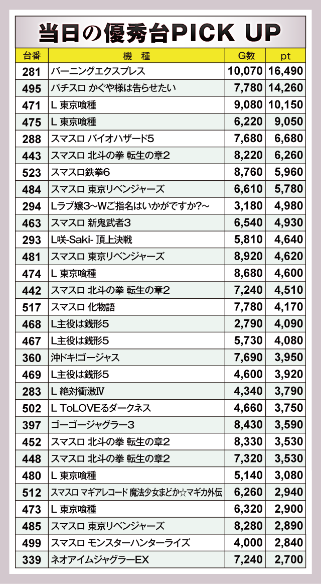 ※差枚pt順に掲載しています。