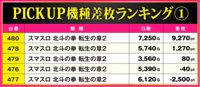当日の差枚ランキング