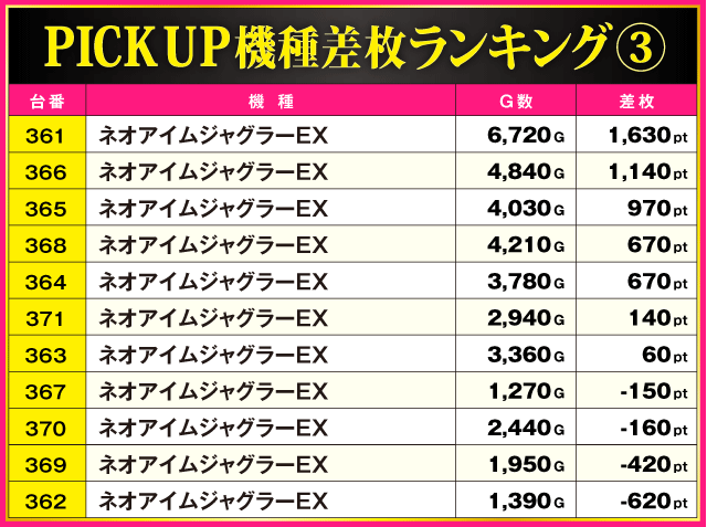 ※差枚pt順に掲載しています。