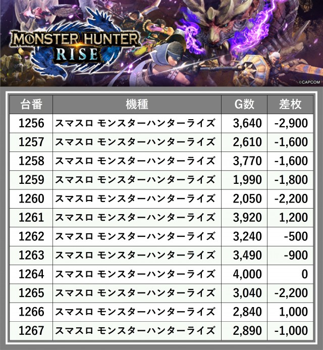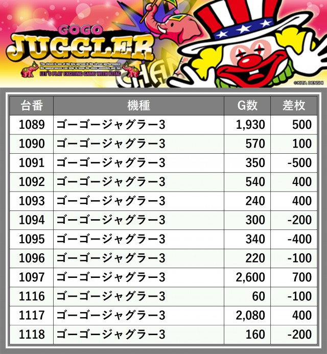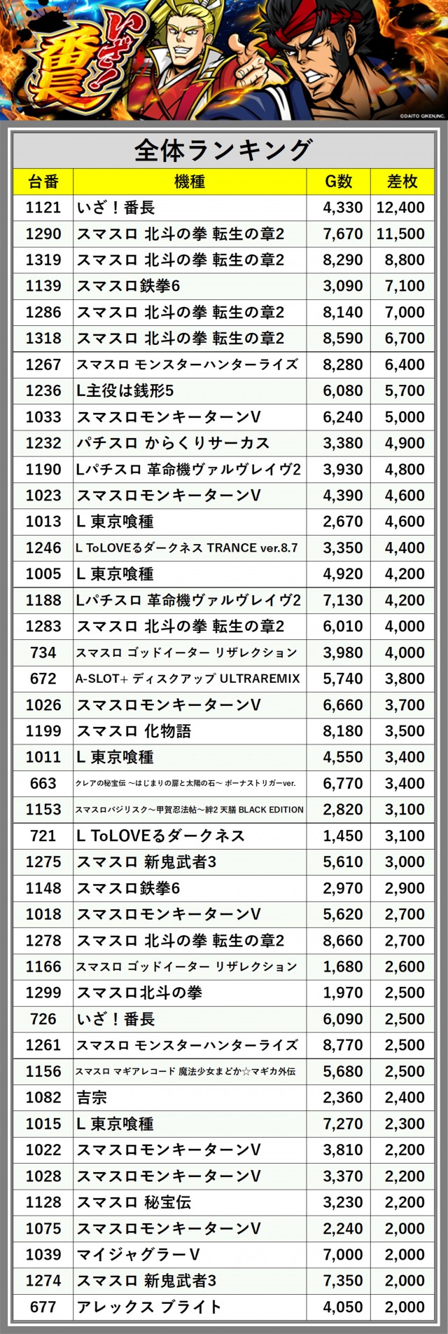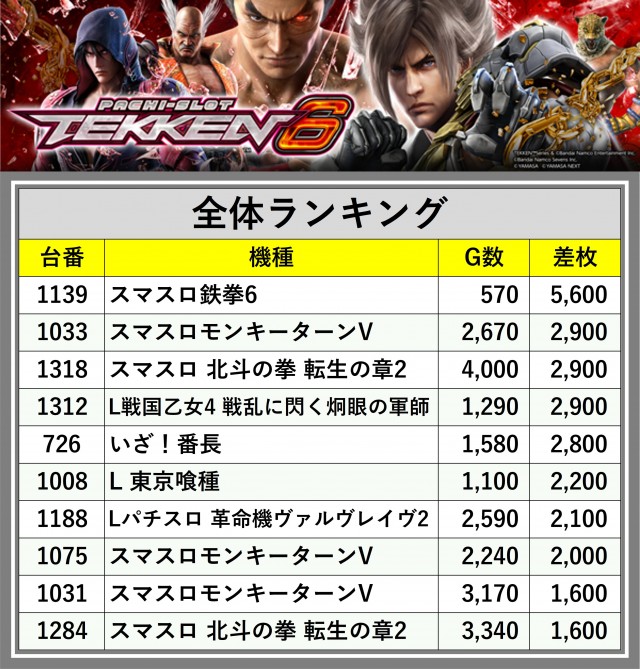 ※差枚数順に掲載しています