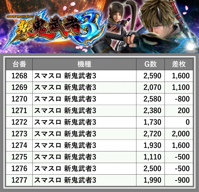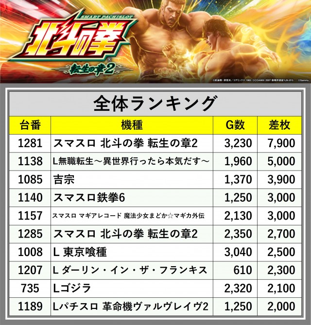 ※差枚数順に掲載しています