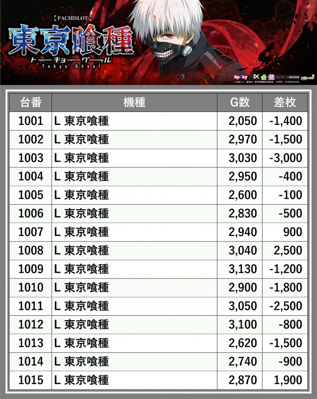 ※台番順に掲載しています