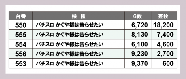 ※差枚数順に掲載しています