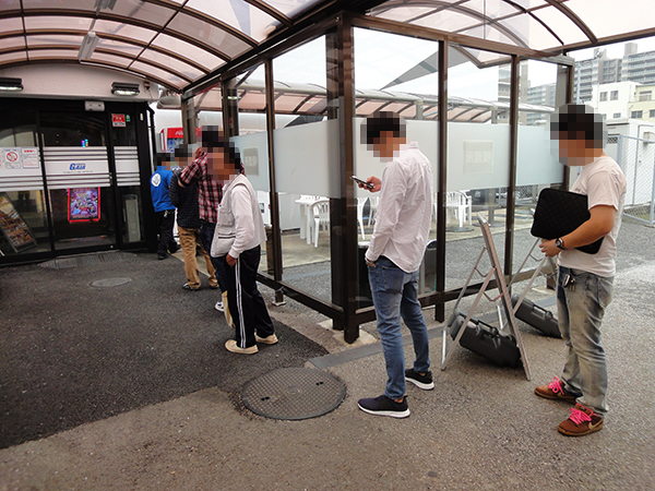 大型駐車場を完備しているため、車でのアクセスが良いホールだ。朝の行列には多くのプレイヤーが並び、開店を心待ちにしている様子だった。