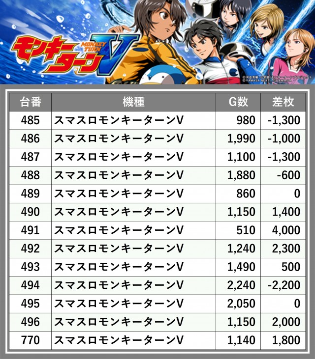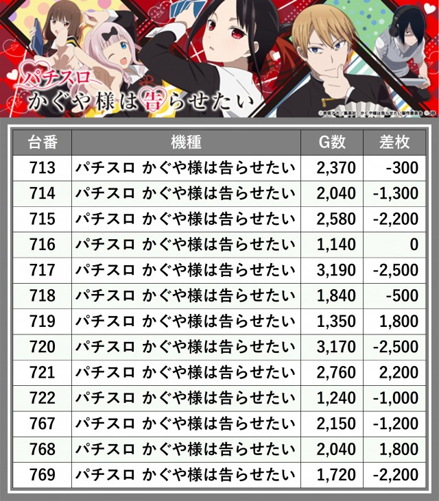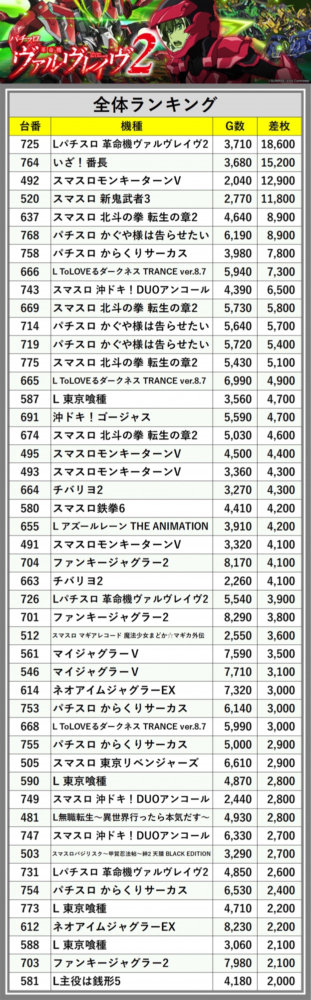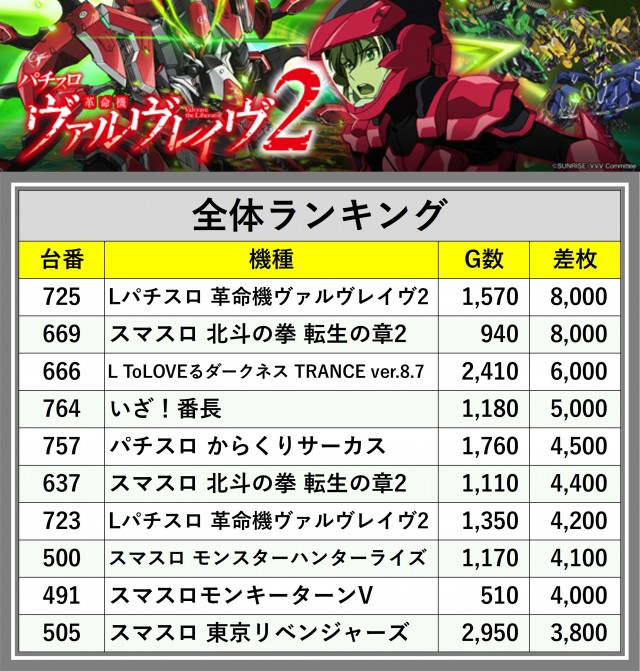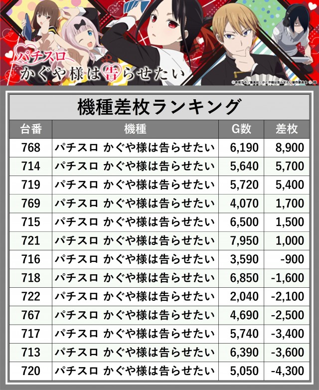 ※差枚数順に掲載しています