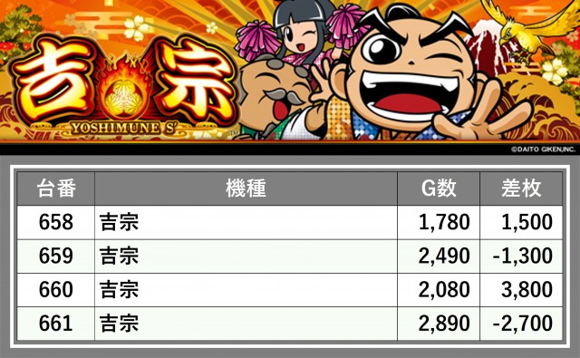 厳選された取材対象機種をはじめ、その他スロット全体から好記録が飛び出した!プレイヤーが楽しんだ1日を下記データにて振り返ってみて欲しい。