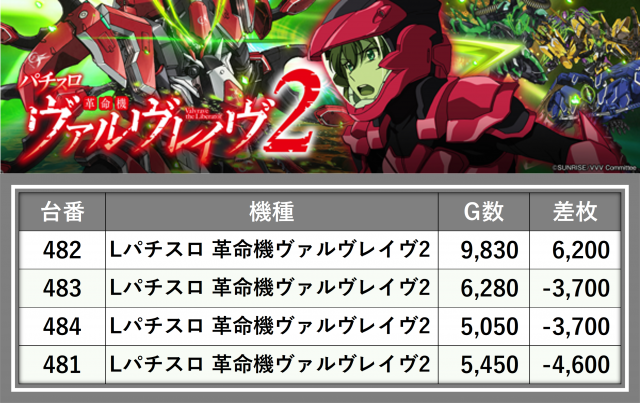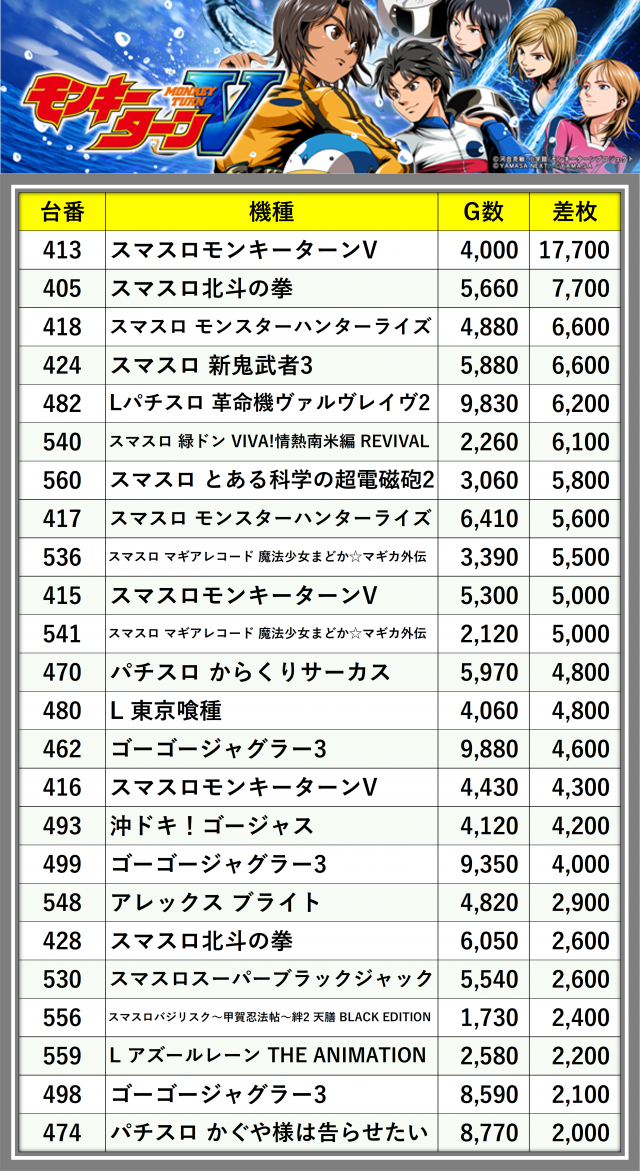 ※差枚数順に掲載しています