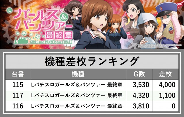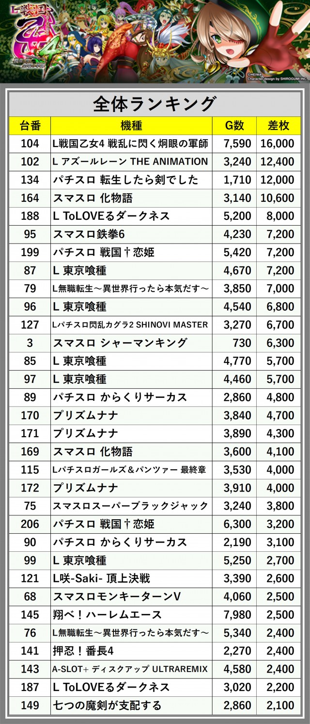 ※差枚数順に掲載しています