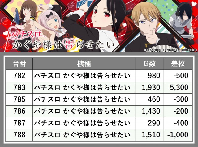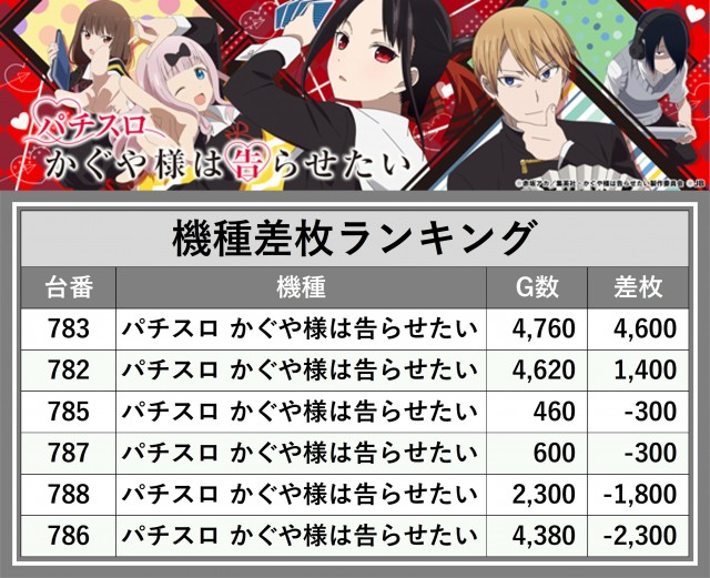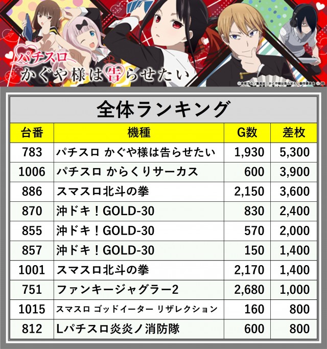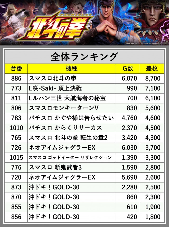 ※差枚数順に掲載しています