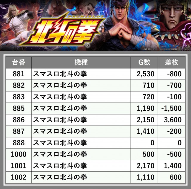 ※台番順に掲載しています