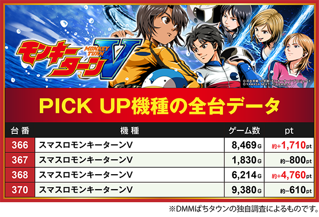 「スマスロモンキーターンV」では、368番台が約+4,700ptオーバー。