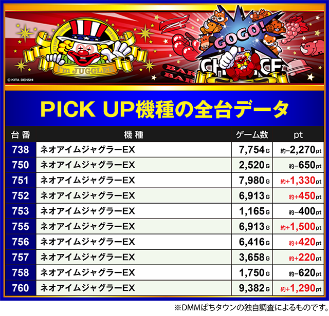 PICK UP機種・全台データ