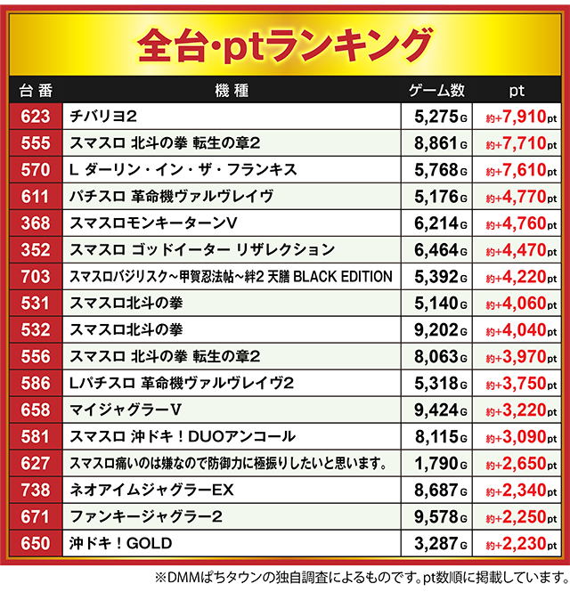 パチスロ全台・ptランキング