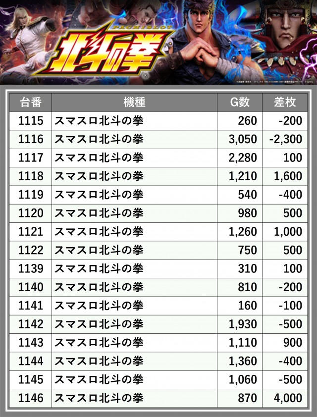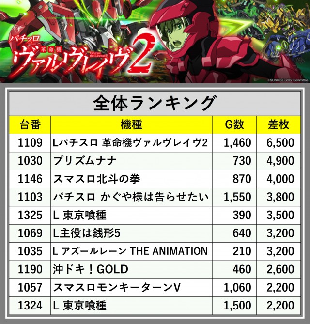 厳選された取材対象機種をはじめ、その他スロット全体から好記録が飛び出した!プレイヤーが楽しんだ1日を下記データにて振り返ってみて欲しい。